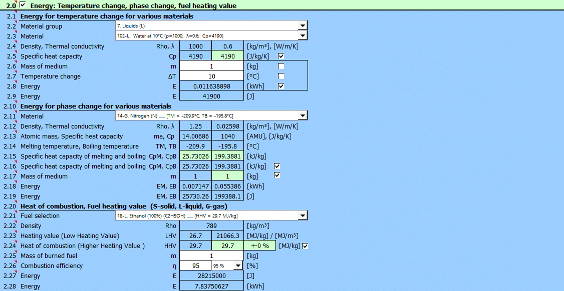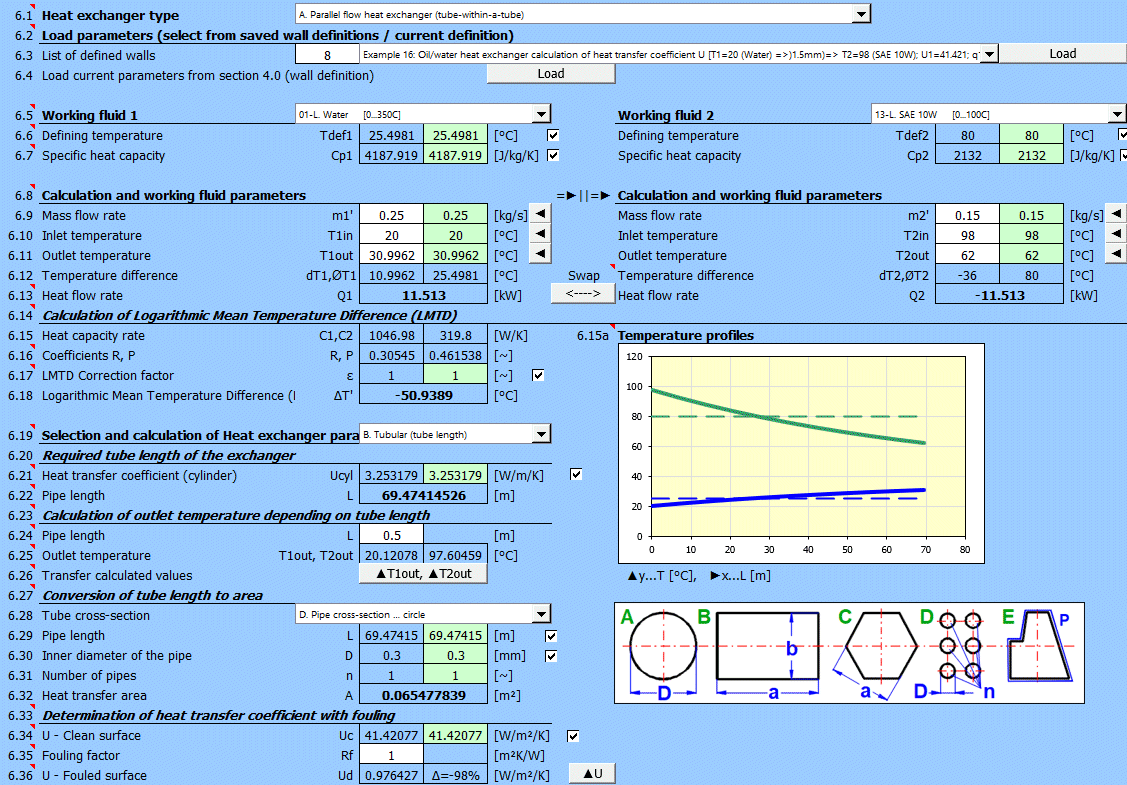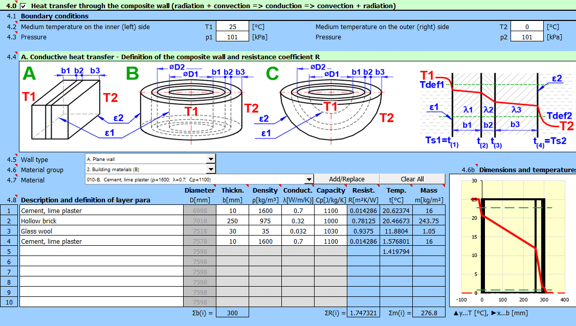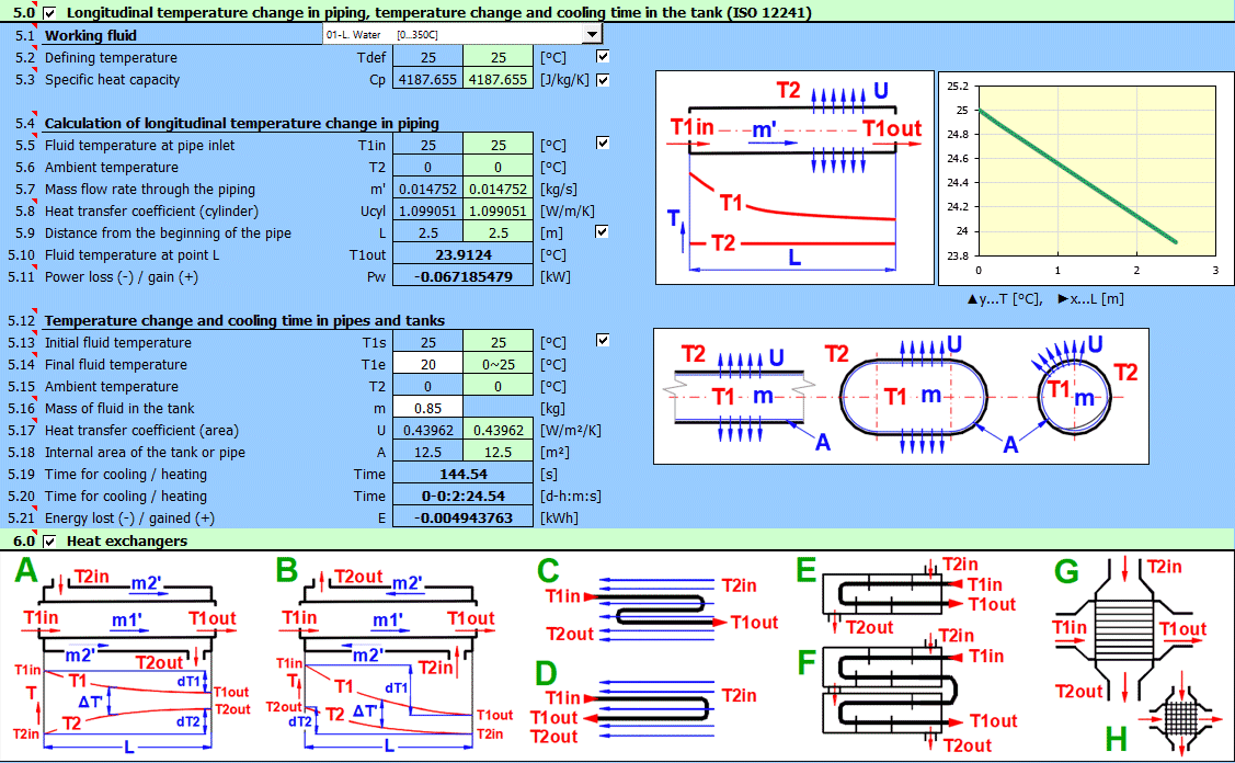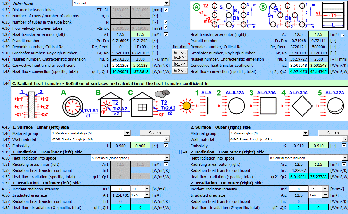 The calculation addresses: energy, ideal gas, heat transfer through a composite wall, finned wall and tube bundle solutions, heat exchangers, radiation and more.