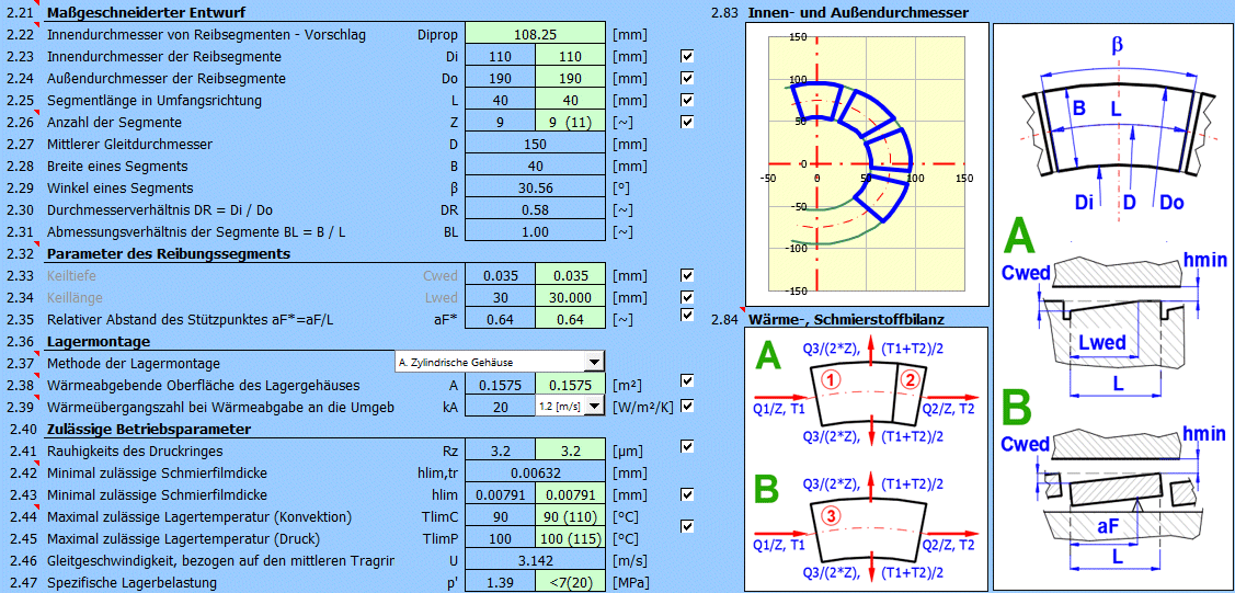 Berechnung und Kontrolle von Hydrodynamische Axial-Gleitlagern und Axial-Kippsegmentlagern.