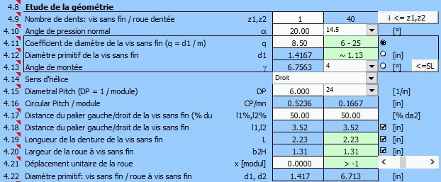 - Étude automatique du rapport d'engrenage avec minimum d'entrées.